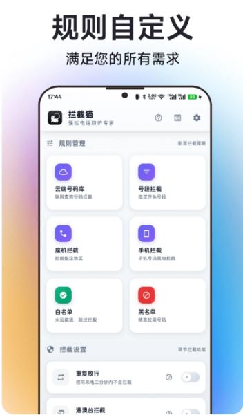 另外,拦截猫软件还提供黑名单和白名单功能,支持自定义关键字和手机号码,用户可以根据自己的需求进行个性化设置,确保信息安全和隐私保护,有需要的用户快来下载吧。