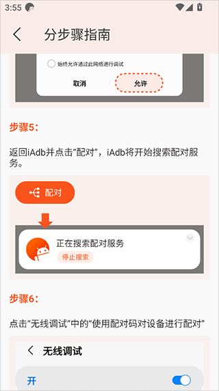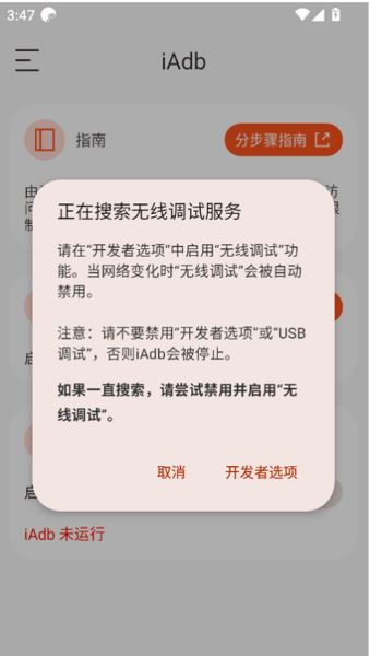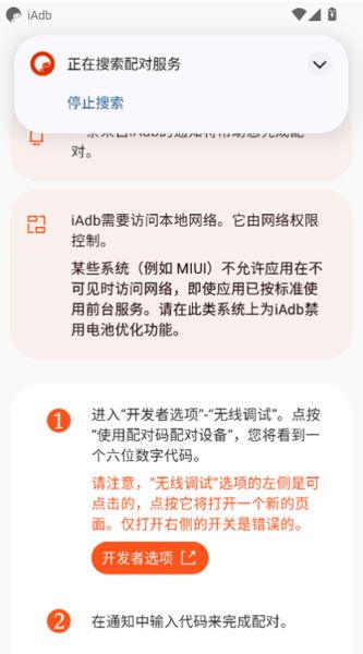 5、然后返回iAdb并点击“配对”,iAdb将开始搜索配对服务