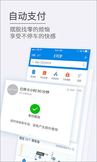 精准地图,提供附近停车场路线,查询停车位置、时长、账单明细。