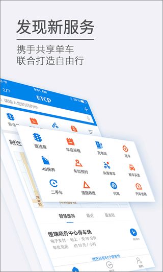 通过ETCP停车平台享受洗车、车险、保养等服务。