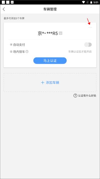 车主认证后,车牌信息会展示完全并且可以查看历史停车记录中的具体车场名称;还可享受app中违章查询等增值服务。