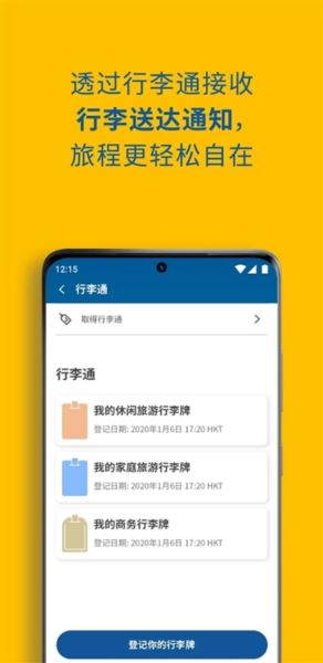 购买“行李通”智能牌(HK$90起),绑定至应用后,行李送达时推送通知。