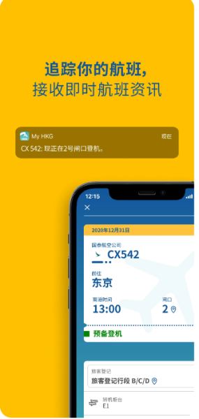 1、My HKG能够获取实时航班资讯及通知
