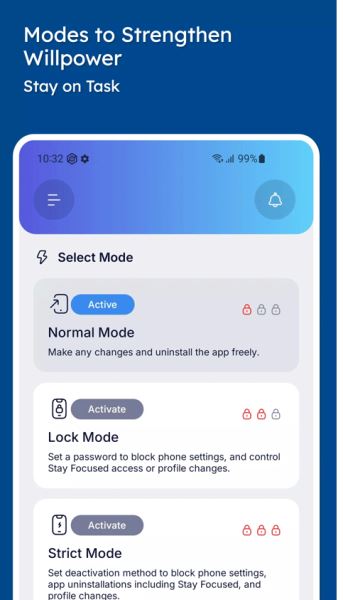 4、严格模式:锁定设置以确保一致性并加强自我控制。