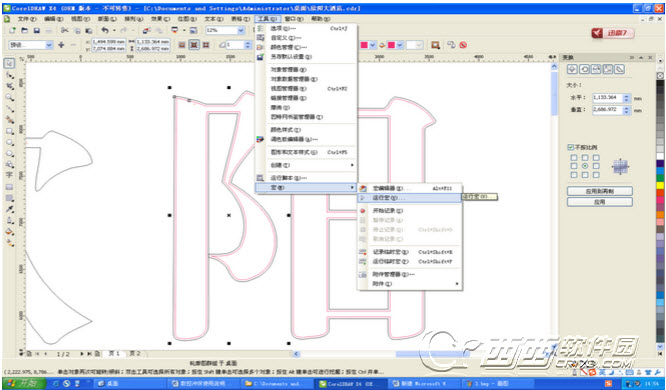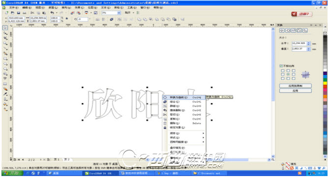1、首先对要排孔的字进行转曲(单击右键转换为曲线)如图所示: