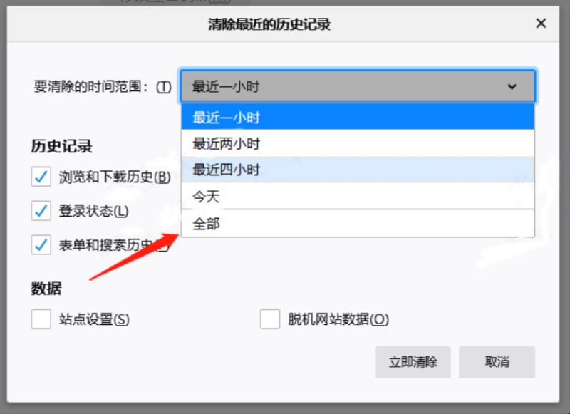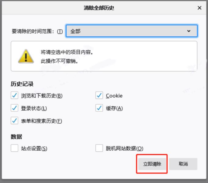 注意:这项操作会删除浏览器所有的上网足迹与缓存