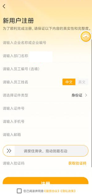 2、在注册界面输入手机号等信息,点击完成注册。