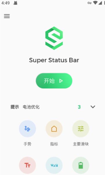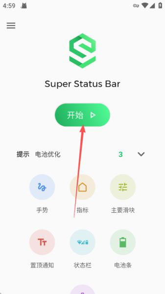 1、打开超级状态栏App,点击【开始】
