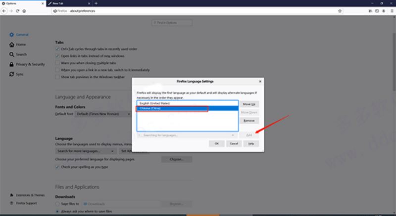 3、在里面找到中文Chinese之后点击“add”添加;