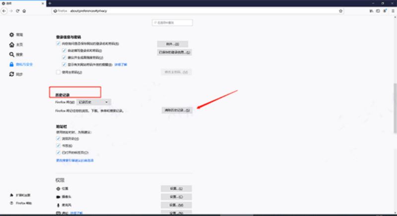 2、之后找到“隐私与安全”中的历史记录,点清除历史记录
