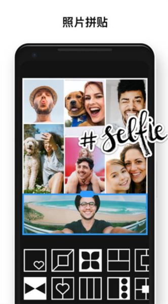 3、照片拼贴功能,100多种布局和背景;