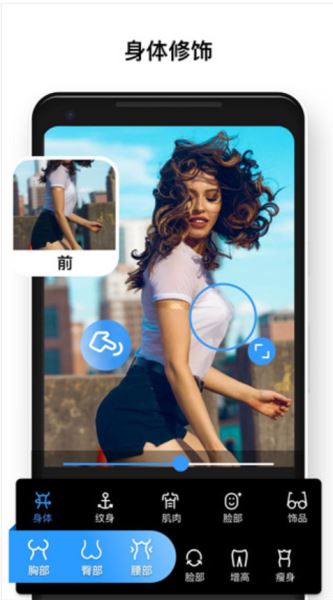 无需任何照片编辑技巧,也能获得完美身材。您可以瘦身和瘦脸,去除腹部脂肪,拉长腿,打造黄金比例。您还可以给身体添加六块腹肌,肌肉和纹身等众多贴纸。