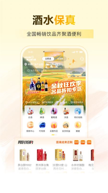 酒便利app是国内知名酒水流通行业“互联网+”的新零售平台——酒便利的手机移动端应用,该应用采用“互联网平台+呼叫中心+实体门店+配送”的线上线下一体的经营模式,为用户提供覆盖白酒、葡萄酒、啤酒、进口烈酒、保健酒、黄酒、饮料、专业酒具、香烟、茶叶等600余款产品的线上提供服务,并且可为不同需求顾客提供特定酒水或定制服务。同时酒便利app率先在酒水流通行业进行“20分钟准时达、慢必赔现金”的活动,全国20分钟送达率平均在90%以上,而且所有酒水均为源头采购、杜绝非官方渠道货品流通,酒水从仓库到门店全程跟踪,专业货品交接流程。每笔外送订单均配备一次性防伪锁扣验证,保障每一瓶送出的酒水送货途中无调换行为,保障顾客喝到的每一瓶酒都是放心酒。另外酒便利app还有很多预约抢购活动,诸如茅台洒预约抢购可在这里方便进行,有需要的用户可以在本站下载使用。