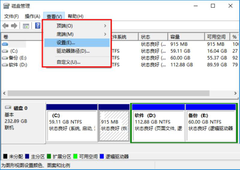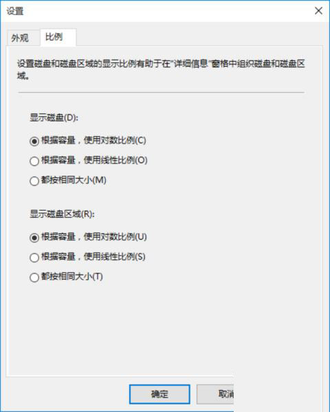 8、还可以设置次哦按与磁盘分区的显示比例。
