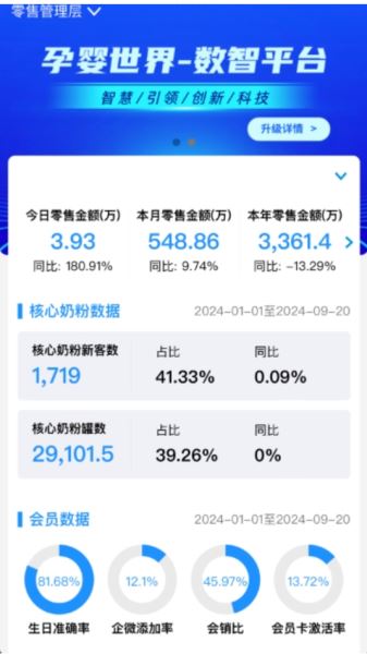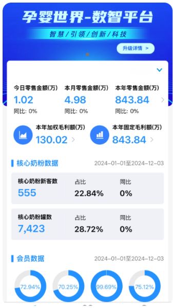 展示了详细的会员数据信息,对会员增加的百分比和激活率都可以进行查看。