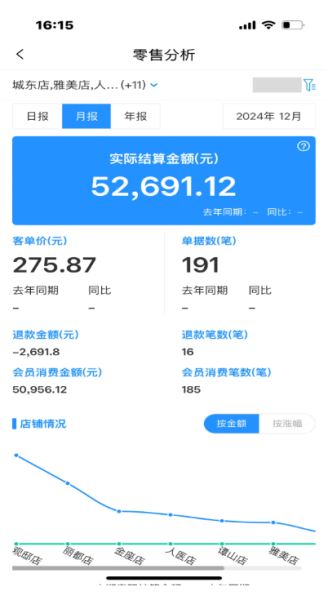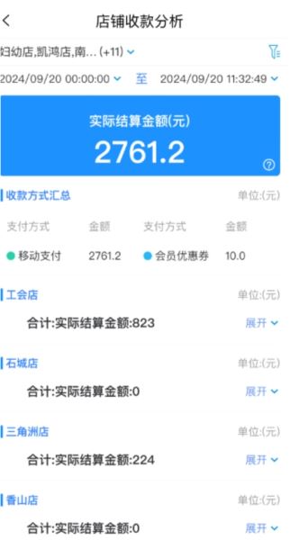 对店铺的收款数据也可以实时结算分析,了解门店的零售利润,轻松结算。