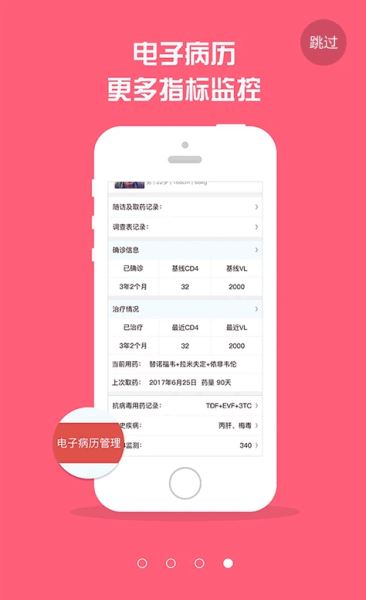 4、新增用药提醒功能,帮助用户按时服药,同时支持CD4、病毒载量变化记录曲线记录,方便用户跟踪病情。