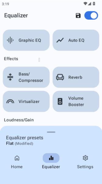 在均衡器设置中,你可以找到如低音增强、混响、虚拟环绕声等音效增强工具。