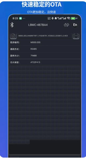 凌博智控app也叫凌博控制器app,它是凌博控制器官方推出的手机蓝牙连接控制器进行调试的工具,集成设备连接、参数调试、状态监控与数据分析功能。通过蓝牙5.0快速配对后,用户可实时查看转速、时速、温度等20余项数据,并同时管理多台设备。
