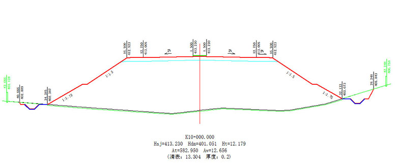 1、横断面:自动进行横断面设计戴帽,支持从数字地形提取横断面。 提供的成果:横断面图、清除表土数量表、土石方数量计算表、坡口坡脚计算表及图形、占地界坐标计算、道路用地计算及图形。其中坡口坡脚计算的坐标、高程可以直接传输到全站仪用于放样。 具有边坡超欠挖控制功能。