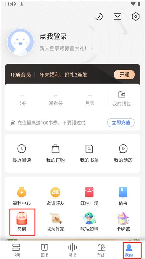 3、签到”搬家到书架,在书架就能预订更新,追更不再错过。