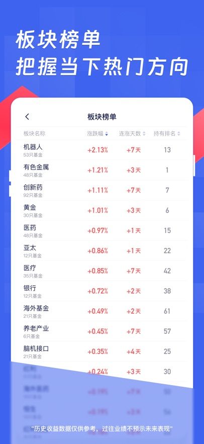 5、平台内设有多种热门榜单推荐,通过不同维度进行筛选与汇总,帮助用户发现关注度较高的基金产品,拓宽选择思路。