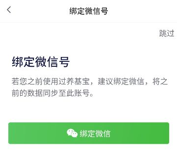 4、最后用户可以选择是否绑定微信,也可以直接跳过享受完整基金内容。