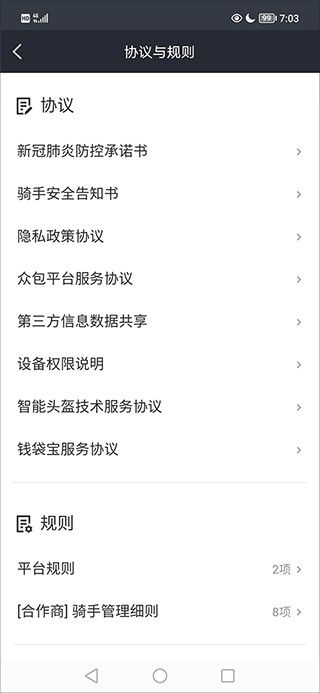 3、接着在协议与规则中找到并点击“【合作商】骑手管理细则”;