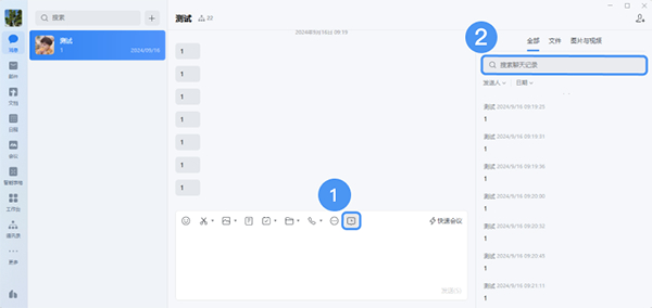 (1)入口:选择某个聊天会话,点击会话菜单的聊天记录图标,可搜索查看当前会话的历史聊天记录。