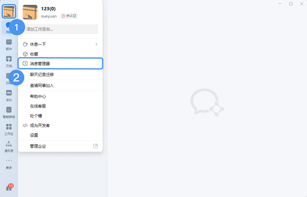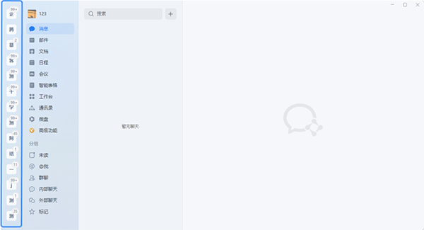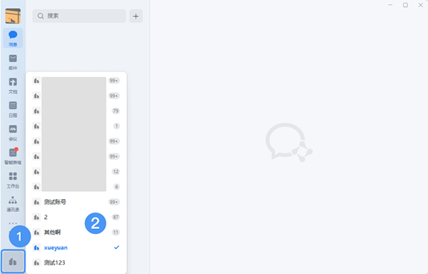 注:点击侧边多个企业展示栏中的企业或点击电脑端右下角消息闪烁中其他企业的消息提醒,会自动切换到对应企业。