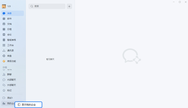 (2)如电脑端展开了侧边导航,可点击侧边栏的空白处或左下角我的企业鼠标右键选择“显示我的企业”