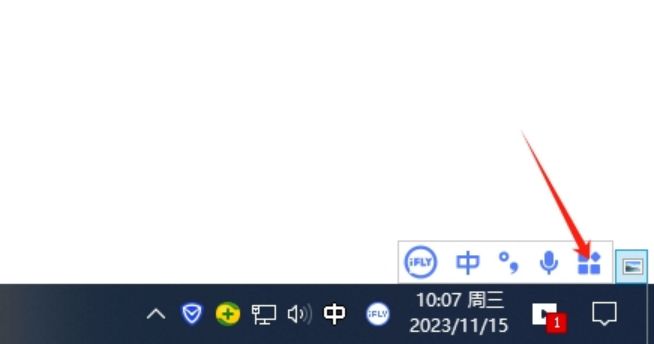 2、那么之后你想要通过状态栏进行设置内容的时候,用鼠标点击电脑桌面是无法显示状态栏的,我们需要在右下角的任务栏中,将输入法切换为【讯飞输入法】。