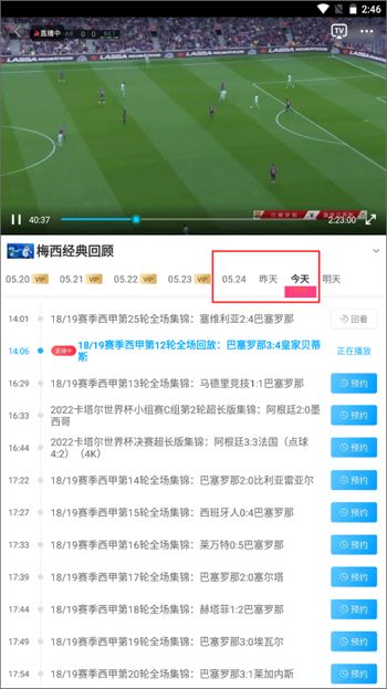 2、你可以看到左边显示有vip字样的日期是需要付费才能观看,而后面的则是免费的,差不多能观看三天的回看。