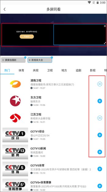 2、如果想要多屏播放,就可以点击右边的“+”来添加。