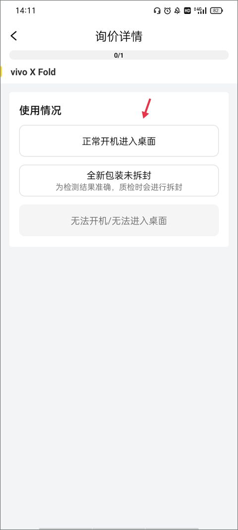 4、接下来就是进入到手机估价阶段,你需要根据手机来选择你手机的使用情况,目前暂不支持“无法开机/无法进入桌面”这类手机。