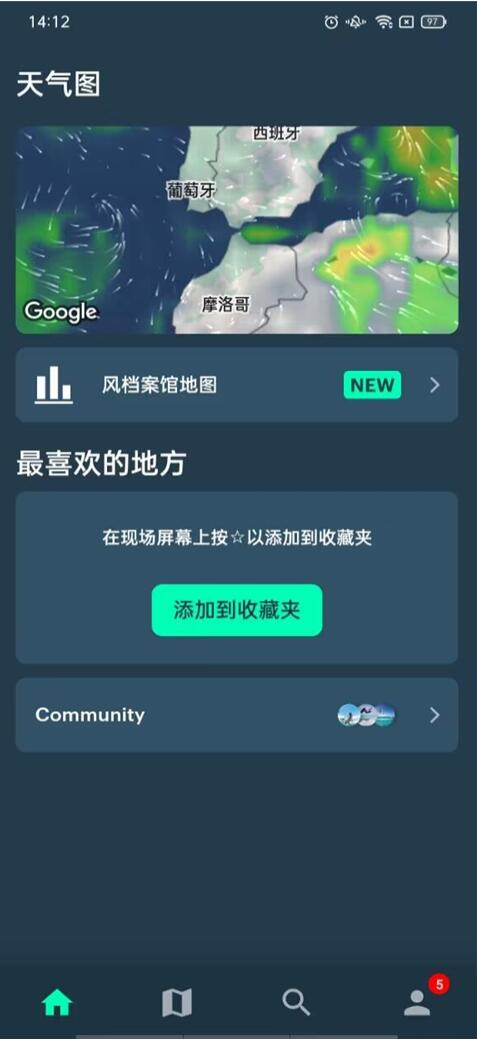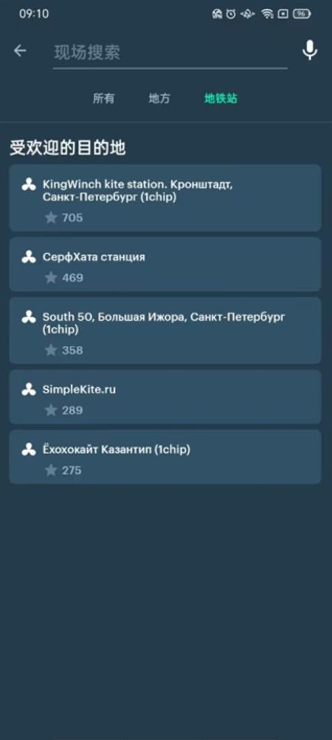 7、Windy蓝色版本支持搜索地方、地铁站等场景,也可以直接收藏区域;
