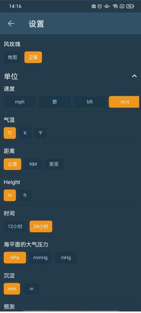 6、在右下角的设置选项中还可以设置相应的天气详细设置;