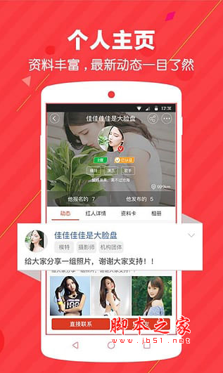 4、支持多维度个人信息展示、私信沟通、通告快捷发布与报名、活动海选、人脉搜索等艺人日常工作所需的各项便捷功能;