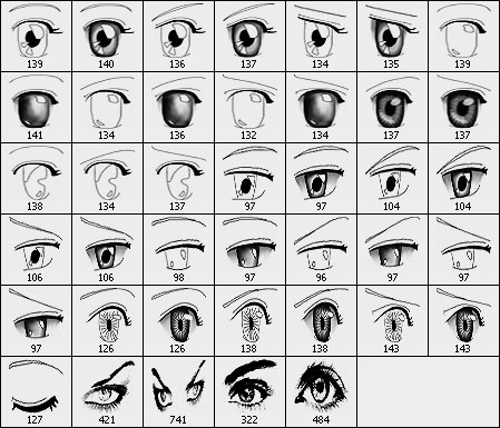 内含10个abr笔刷文件,有jpg预览图,为超多款嘴唇笔刷、眼睛笔刷、睫毛笔刷、发型笔刷……