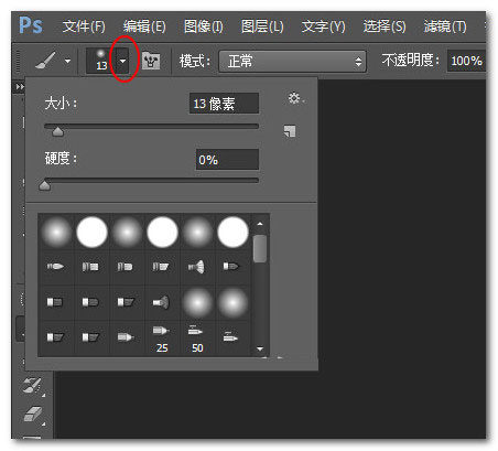 2、点击画笔工具后,在菜单栏的下方会出来画笔工具的状态