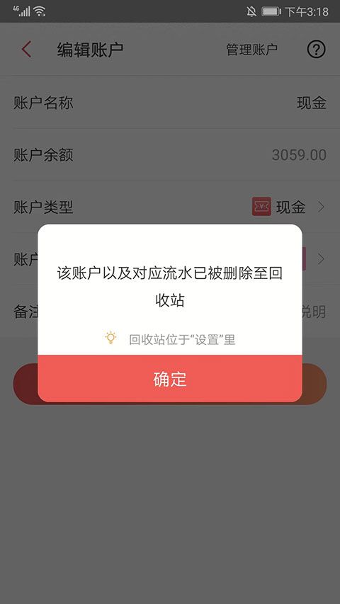 5、提示“该账号以及对应流水已被删除至回收站”,账户删除完成。