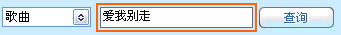 伴奏搜索可直接输入,“歌手名”或“歌曲名”进行模糊搜索;如:按歌曲查找 :输入“爱我别走“点击查询