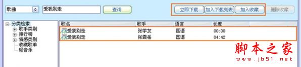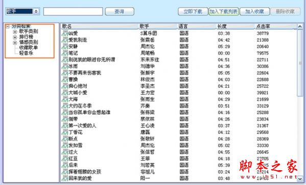 同时也可以采用分类检索方式;分类检索其中包含:(歌手类别、排行榜、情感类别、收藏歌单、轻音乐)