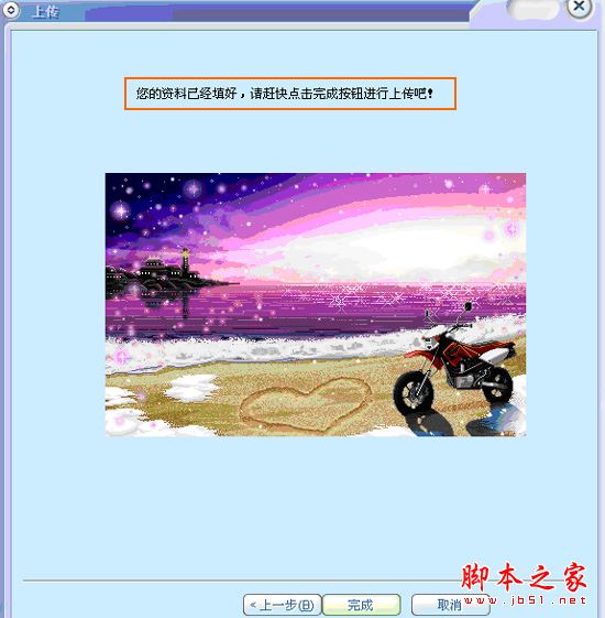 直接加载曲目;然后选择视频来源为图片点击[确定],从本地浏览上传图片并浏览确定后; (本地选取图片可以采用拖动式多张选择) ; 最后伴随音乐演唱 ;完成后进入音效调节页面,对各项音效做完善处理后;进入视频合成页 ,然后点击合成(合成需要一点时间稍等片刻 );合成完毕后,点击“ 预览”按钮进行确定,完成后进入下一步“ 填写资料页” ,按照要求填写即可,最后完成上传步骤;