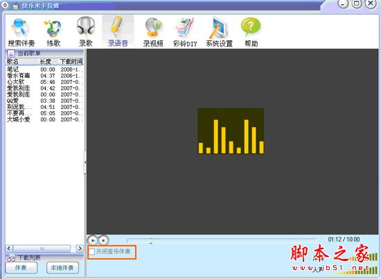 如果你想录制无背景语音,那么可以在倒计时前,选择“ 关闭音乐伴奏” 当音乐起就不能做关闭处理了;