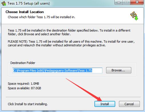 2、双击"tess_setup.exe"文件,点击"install“开始安装,然后根据安装向导完成安装即可;