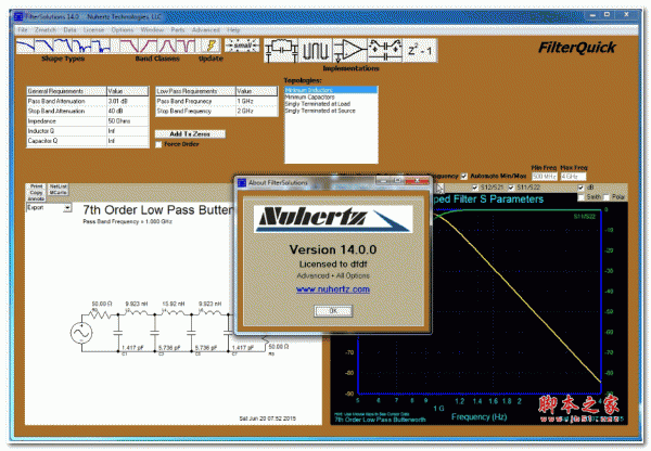 Filter Solutions 2015破解版是一款由Nuhertz推出的专业电子滤波器电路合成以及分析软件,软件可以用于各类设计领域,比如集成电路、仪器仪表等,软件包含了丰富实用的模块,比如无源滤波器,分布式滤波器等,可以大大地提高设计性能,新版本还优化了软件细节,欢迎有需要的朋友们前来下载使用。