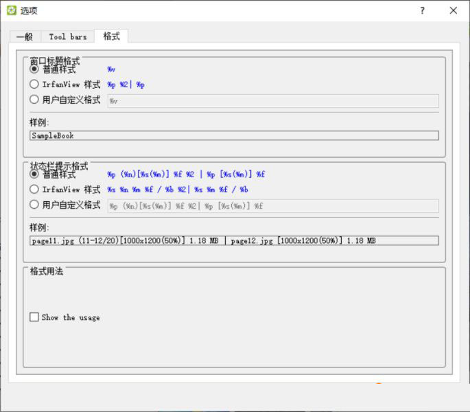9、格式设置,可以在软件设置窗口标题格式,可以设置状态栏提示格式