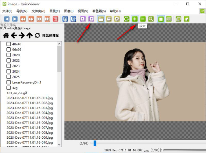 2、在软件顶部可以找到切换图片功能,可以找到放大和缩小功能