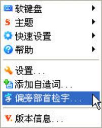 右键点击“设置”,选择“偏旁部首检字”功能,按照部首检字的方法就可以查到您要找的字。